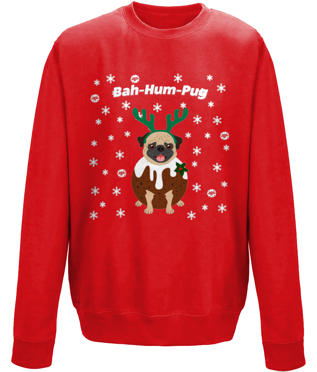 Kids Christmas Sweatshirt Bah-Hum-Pug